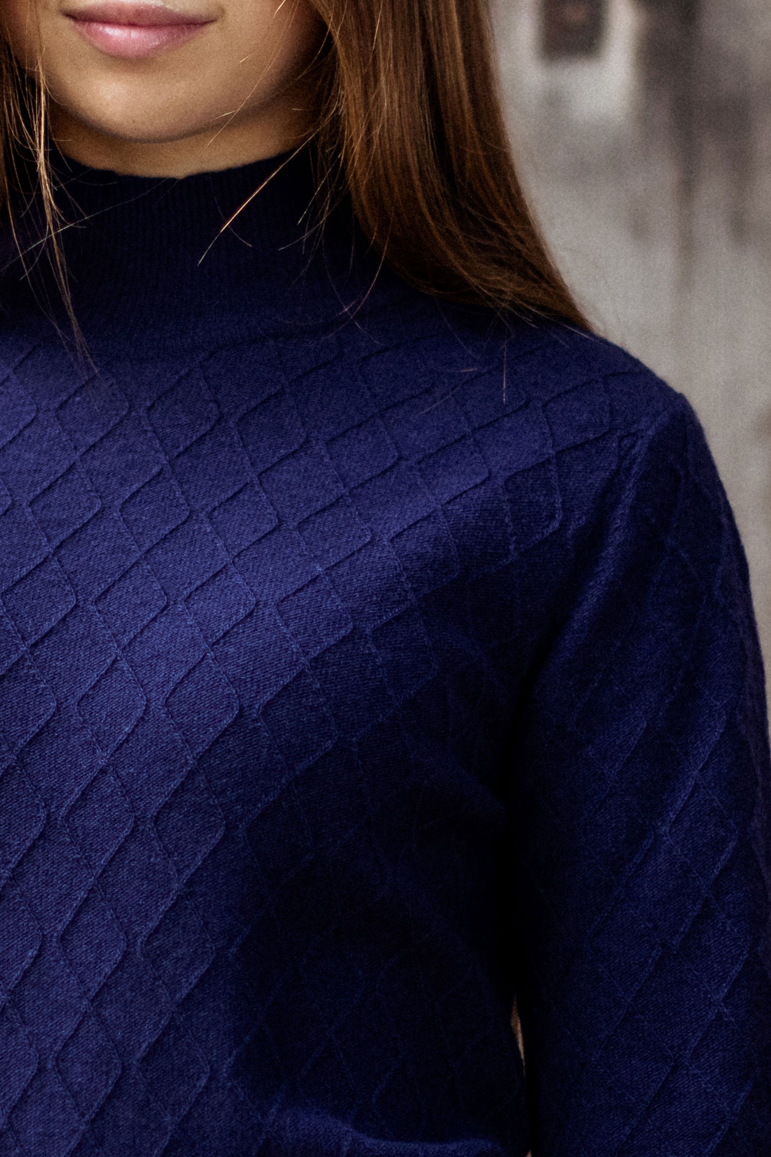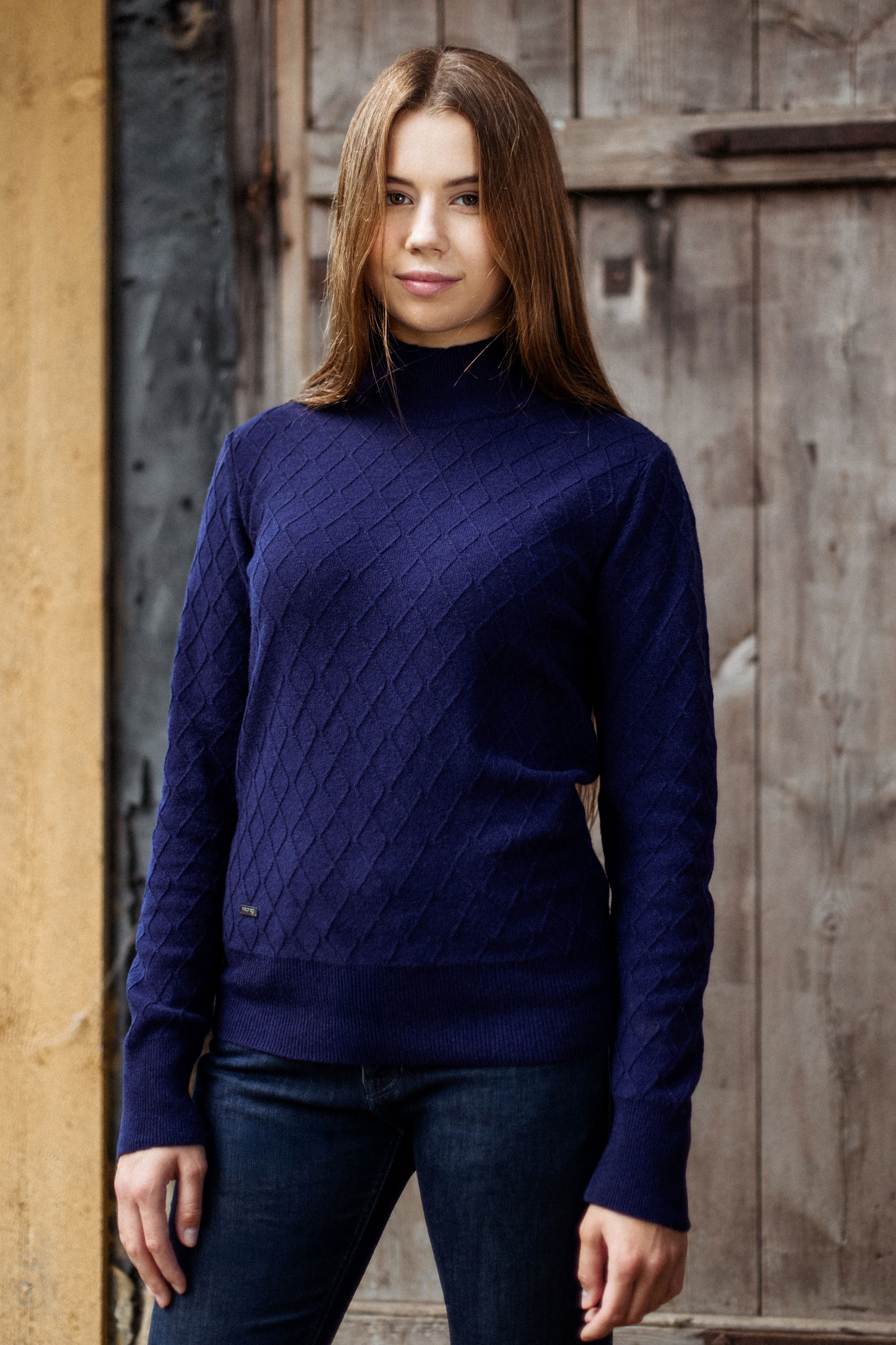 Naiste kõrge kaelusega õhuke, kuid pehme ja soe täisvillane kampsun on üleni rombi koemustriga.